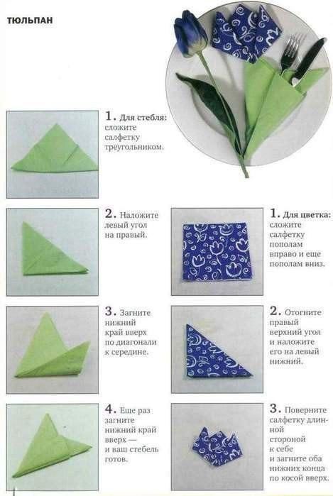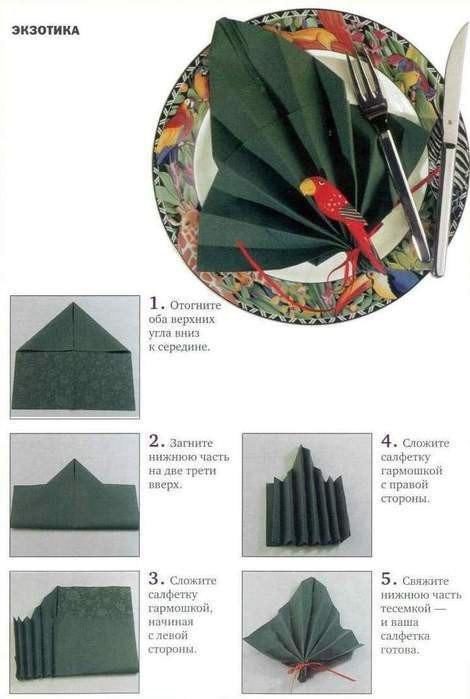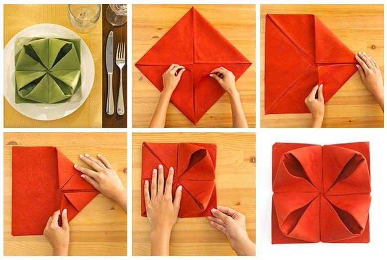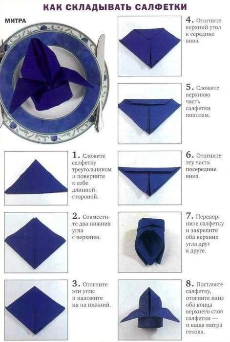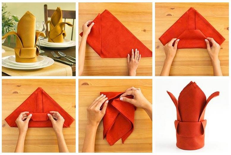 Вариантов складывания бумажных салфеток для украшения стола очень много