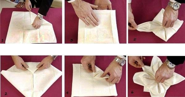 Пошаговая фото инструкция складывания цветка из салфетки: