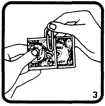 1. Выполните все операции с этапа 1 по 4 предыдущего фокуса, закрепив скрепкой складки купюры, как показано на рисунке.