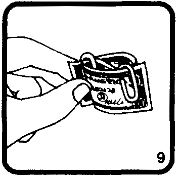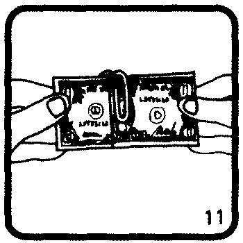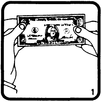 9. ПРИМЕЧАНИЕ. Если обе скрепки поставлены правильно, то купюра должна выглядеть так, как показано на рисунке.