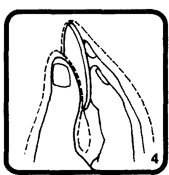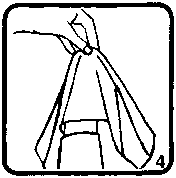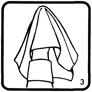3. Когда монета полностью скрылась под платком, передняя кромка платка (обращенная к аудитории) должна висеть немного ниже задней кромки. Следовательно, платок покрывает монету так, что тыльная сторона платка несколько короче фронтальной.