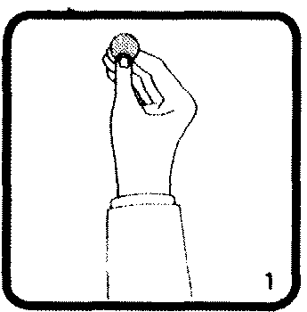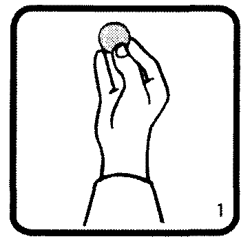 1. Держите монету кончиками большого и указательного пальцев правой руки, как показано на рисунке. Возьмите в левую руку платок.
