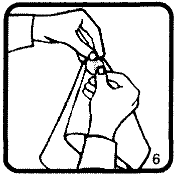 6. Правой рукой переместите монету за платком и ВЛОЖИТЕ ЕЕ ПОД БОЛЬШОЙ ПАЛЕЦ ЛЕВОЙ РУКИ, зажав монету за платком вне поля зрения зрителей.