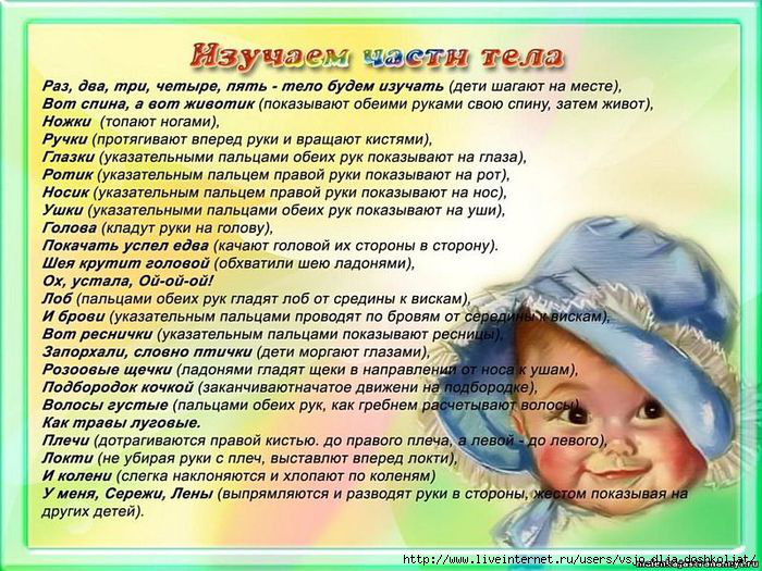 Подобные знания очень важны и с точки зрения здоровья: малыш сразу сумеет объяснить где и что его беспокоит дома или в садике.