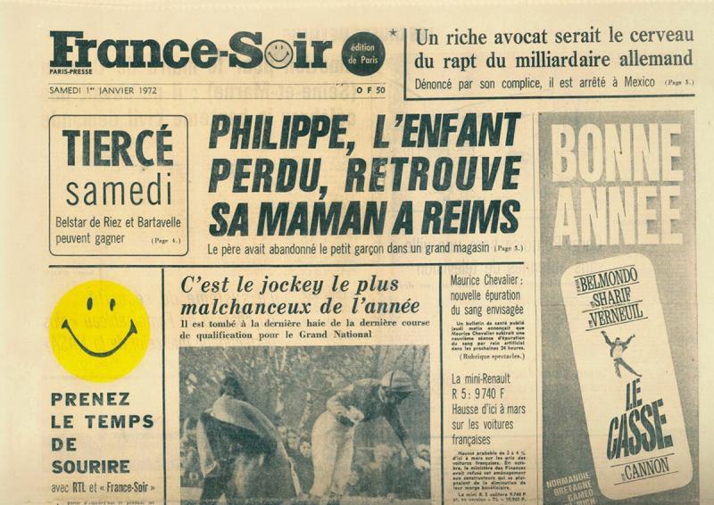 Выпуск газеты France Soir с использованием смайлика в качестве пометки для хороших новостей