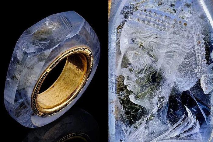 Эксперты считают, что этому кольцу, изготовленному из камня и золота, не менее двух тысяч лет. Представители Wartski, которые также являются ювелирами британской королевы и принца Чарльза, уверяют, что когда-то этим кольцом владел римский император Калигула, и оно было одним из так называемых «драгоценных камней Мальборо».