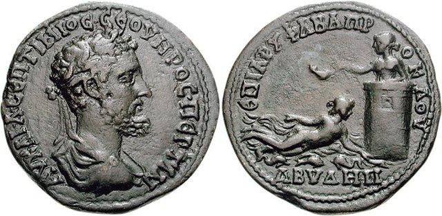 Сцена из мифа о Геро и Леандре изображалась на монетах чеканенных в Абидосе и Сесте во II-III вв. н.э.