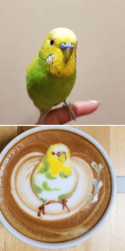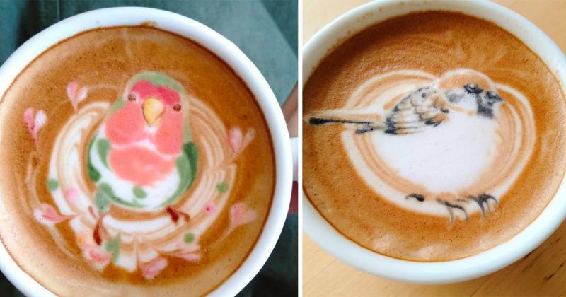 Птичьи портреты на кофейной пене японской художницы Ку-сан