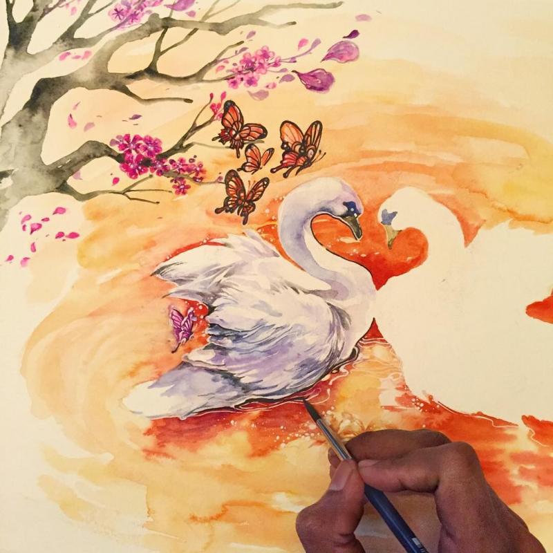 Где-то в середине 2013 года он самостоятельно стал изучать техники известных акварелистов, таких как Агнес Сесиль, Марион Болоньози и Джейсон Сью, наблюдая за их работой в социальных сетях.