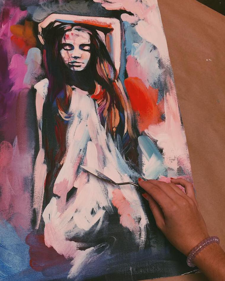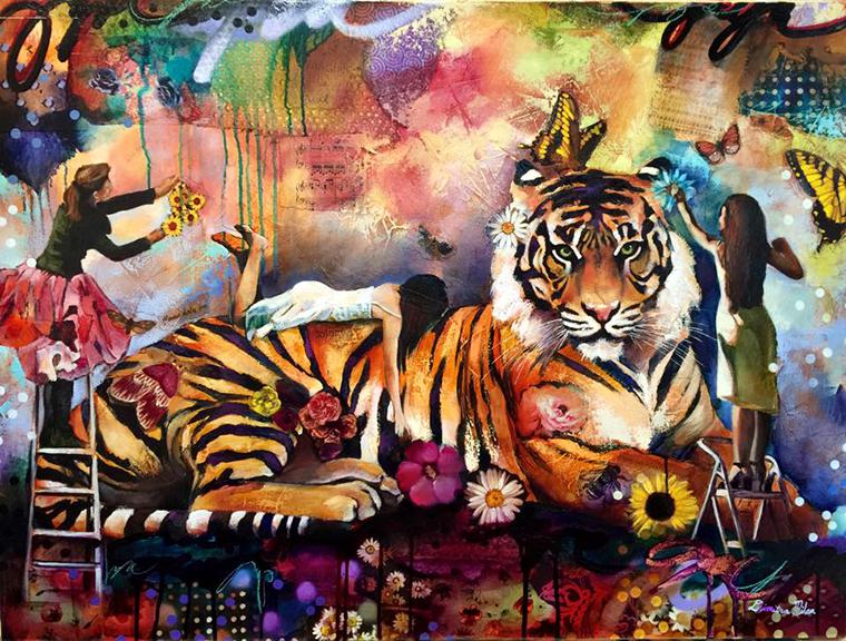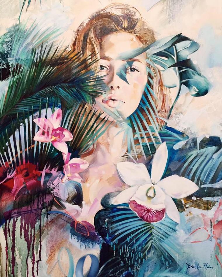 На полотнах юной художницы Dimitra Milan изображен гармоничный мир снов и мечтаний, в котором возможно все. Автор использует в своих работах элементы коллажа, сочетает масляные и аэрозольные краски, акрил. Узнаваемые насыщенные и темные тона сочетаются с бликами, придающими полотнам жизнь. Ее картины — смесь абстракции и реализма.
