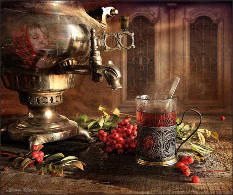 Случайно не задень его руками: В его стальной утробе — жгучий жар! Гостей приветит чаем с пирогами Семьи поилец — русский самовар. 14:550