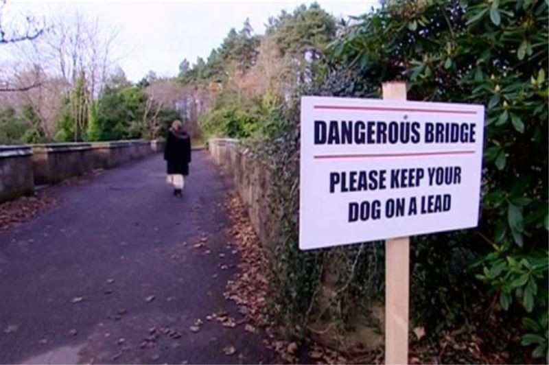 Во избежание несчастных случаев, местные власти установили у моста табличку: «Опасный мост. Пожалуйста, держите вашу собаку на поводке».