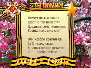 Вечная слава и вечная память Павшим в жестоком бою! Бились отважно и стойко с врагами Вы за Отчизну свою.