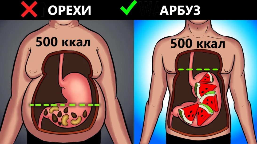 Например, в молочном шоколаде около 500 ккалорий на 100 грамм. За счет низкой калорийной плотности и большого содержания воды, арбуз хорошо насыщает, и в долгосрочной перспективе будет помогать худеть.