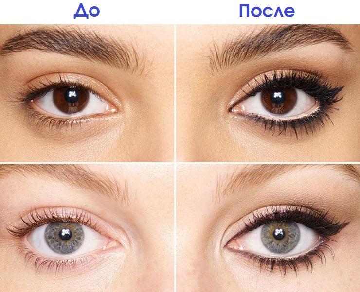 - Используйте тушь, удлиняющую ресницы, и загните их вверх щипцами, ибо длинные ресницы тоже визуально увеличивают глаза.