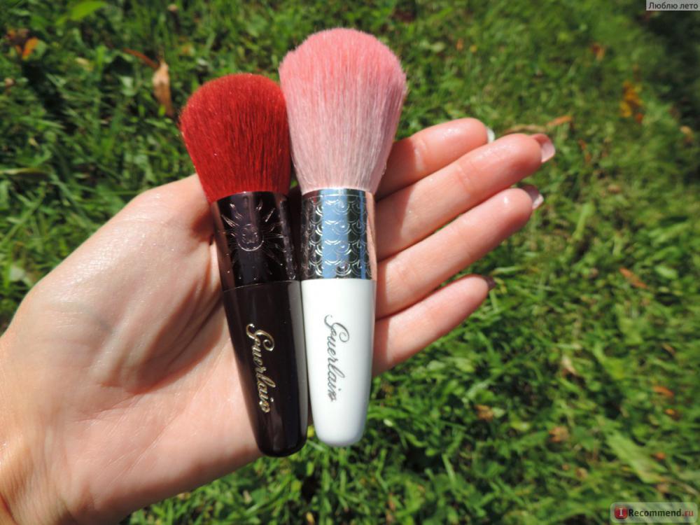 А вот и они!Хитрость состоит в том, что наносить их нужно достаточно жесткой кистью (лучше из искуственного материала) и круговыми движениями, как будто полируя лицо, иначе эффекта вы не увидите. Идеально для этого подойдет либо родная кисточка Герлен: или кисть кабуки.