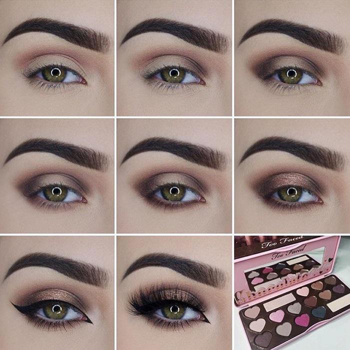 Главной хитростью, используемой для макияжа глаз, чтобы показать их гораздо больше, является игра теней двух оттенков, темного и светлого.