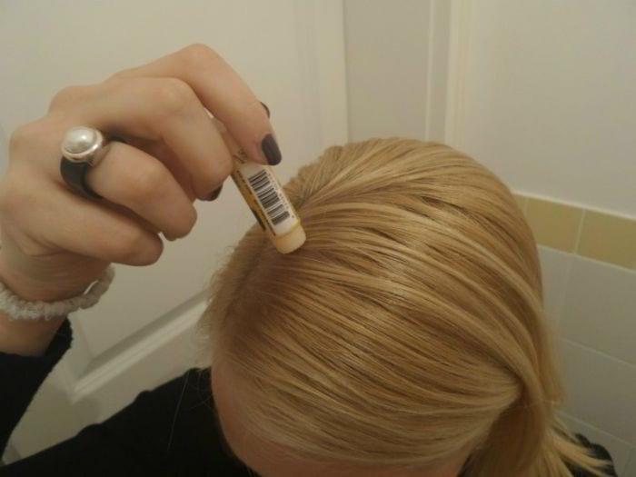 Электризующиеся волосы — проблема многих, особенно в зимний период. Устранить эту проблему просто, если слегка смазать ладони гигиенической помадой и провести рукой над головой, еле касаясь торчащих волос.