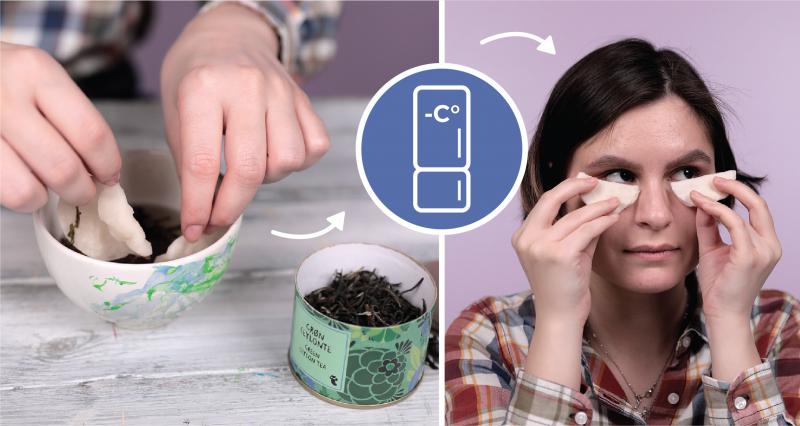 Почти все патчи под глаза работают по одной системе: охлаждённые, они снимают отёчность, но не пигментацию. Сделать такие можно самому. Нарежьте ватный диск на две части, пропитайте зелёным чаем или травяной заваркой и положите в холодильник.