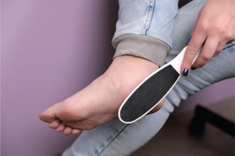 Правильный порядок действий при уходе за стопами: отшелушить пемзой, распарить, промокнуть, поскрабировать. Если использовать пемзу на распаренную влажную ногу, она разорвёт кожу в клочья, которые в сухом состоянии будут цепляться за всё вокруг.