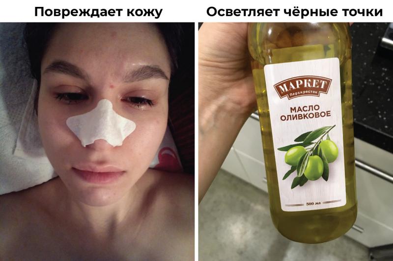 В борьбе с чёрными точками работает старая добрая поговорка: «Клин клином вышибает». Возьмите любое масло, которое у вас есть дома, капните несколько капель на пальцы и начните натирать проблемную зону. Продолжайте полчаса. Обещаем,