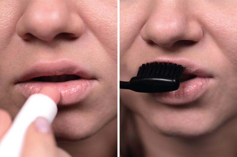 Частички в скрабах для губ могут поранить кожу губ. Лучше густо намажьте губы вазелином или бюджетной гигиенической помадой и помассируйте губы зубной щёткой. Вы можете сами регулировать нажим и делать такой пилинг даже во время просмотра сериала.