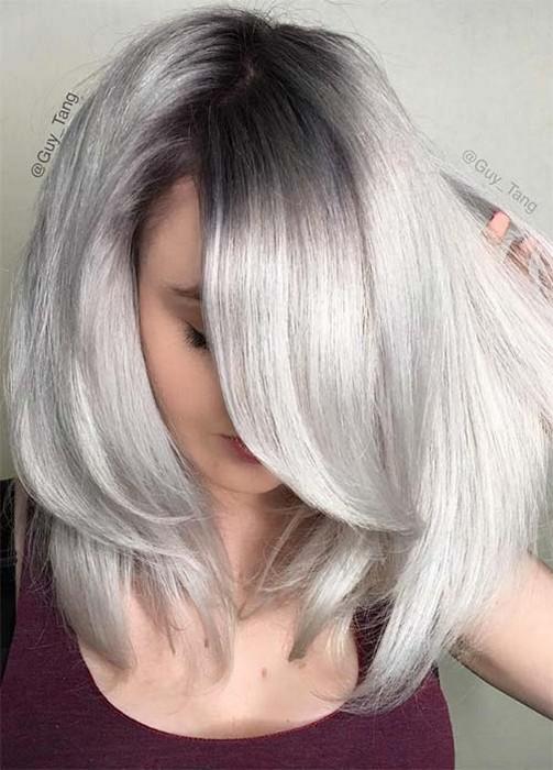 Чтобы скрыть несовершенства волос, включая отрастающие корни, стилисты рекомендуют использовать средства с эффектом блеска. Локоны будут выглядеть здоровыми и ухоженными, а даже контрастные корни восприниматься как решение стилиста.