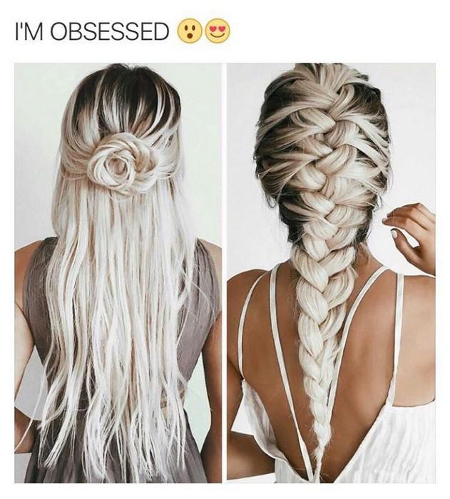 Сделайте одну из стильных причёсок с косами. Переплетение волос и интересные проборы хорошо скрывают разницу в оттенках волос. А количество идей в интернете позволит удивлять новой причёской хоть каждый день.