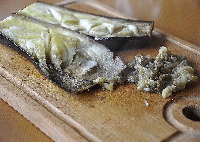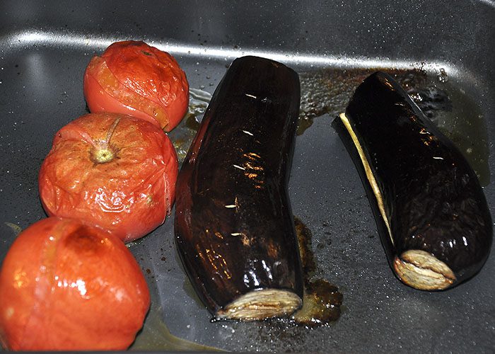 В Греции мы были дважды. На острове Корфу и на знаменитом трезубце Халкидиках. На Корфу, нам подавали эту закуску с томатами в составе, на материке, более популярна закуска без помидор. Хозяин-барин, и я решила освоить рецепт, включая томаты. На мой взгляд, этот вариант закуски, более богат по вкусу. Надо сказать, что подача везде разная. Каждый повар, приносит в закуску что-то своё. Но основа, это запеченные баклажаны. Будет здорово, если вы запечете их на углях. Если нет такой возможности, запекаем баклажаны в духовке.