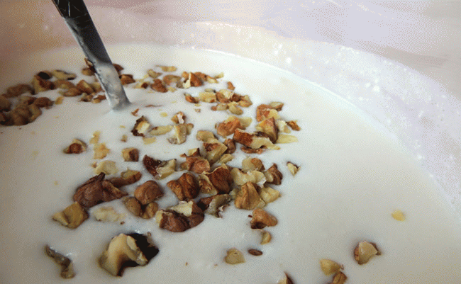Грецкие орехи дробим на небольшие дольки. Не заморачиваюсь одинаковыми размерами, и как получится разламываю руками и измельчаю ножом.
