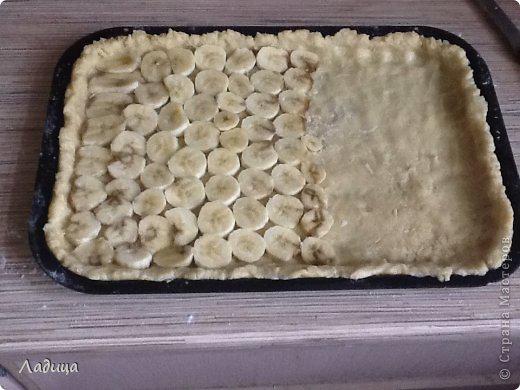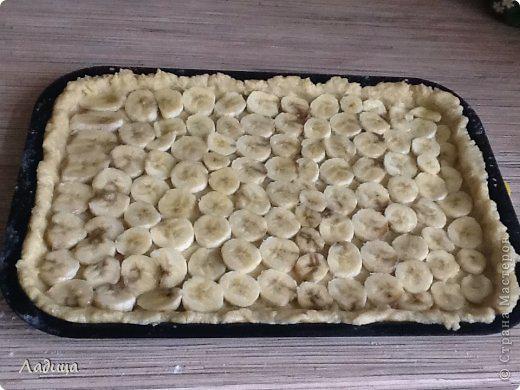 Бананы нарезаем кружочками и укладываем на тесто.
