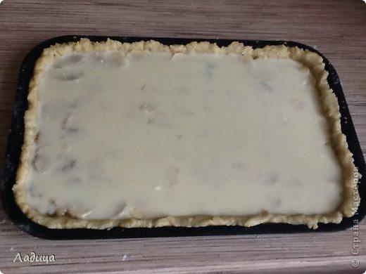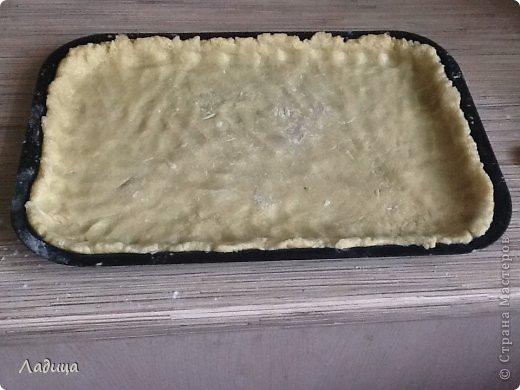 Тесто распределить по противню, обязательно оставьте бортики.
