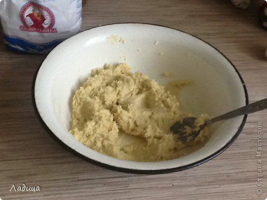 Муку растереть с мягким маргарином, добавить остальные продукты, замесить тесто. Оно, как видите, не слишком тугое.