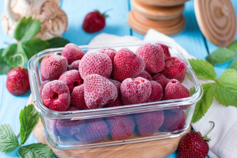 Перед заморозкой все ягоды нужно тщательно промыть и просушить. Затем уже обсохшие ягоды нужно разложить на подносе тонким слоем так, чтобы они не соприкасались друг с другом. Это нужно, чтобы ягоды не превратились в слипшийся комок, а лежали по одной. Поднос с ягодами поставьте в ящик морозилки и дайте им промерзнуть.