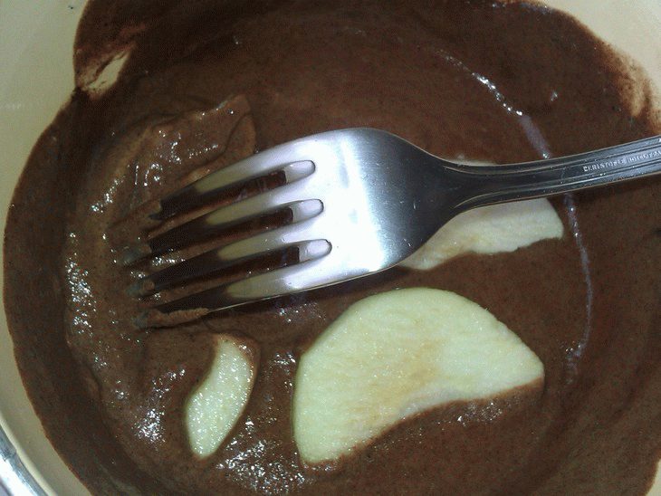 Яблоки нужно обмакнуть в глазурь и выложить на торт.