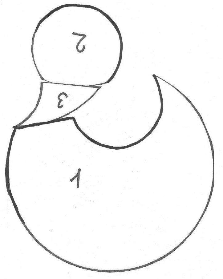 Получится полумесяц. Слева полумесяца отрезать небольшой кусочек (это шея, деталь № 3).