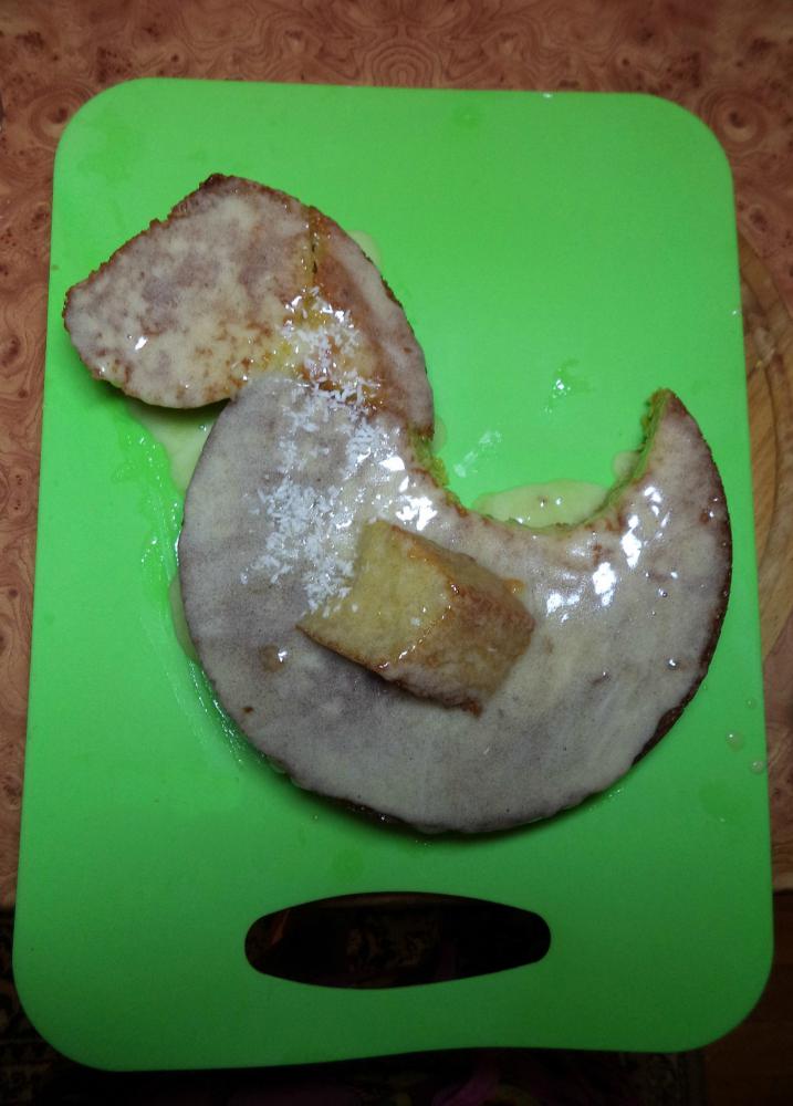 1. Испечь кокосово-апельсиновый бисквит круглой формы