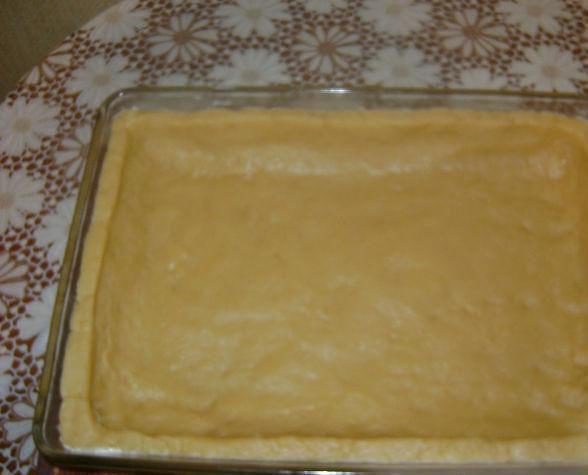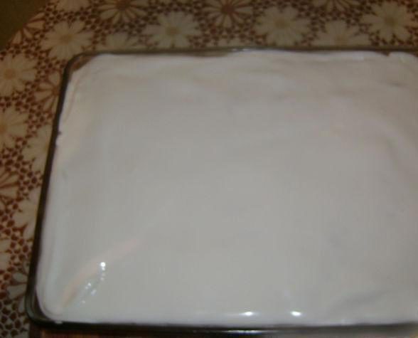 Пирог должен стать золотистым. 6 белков взбить с 200 граммами сахара до крепких пик, выложить сверху на пирог.