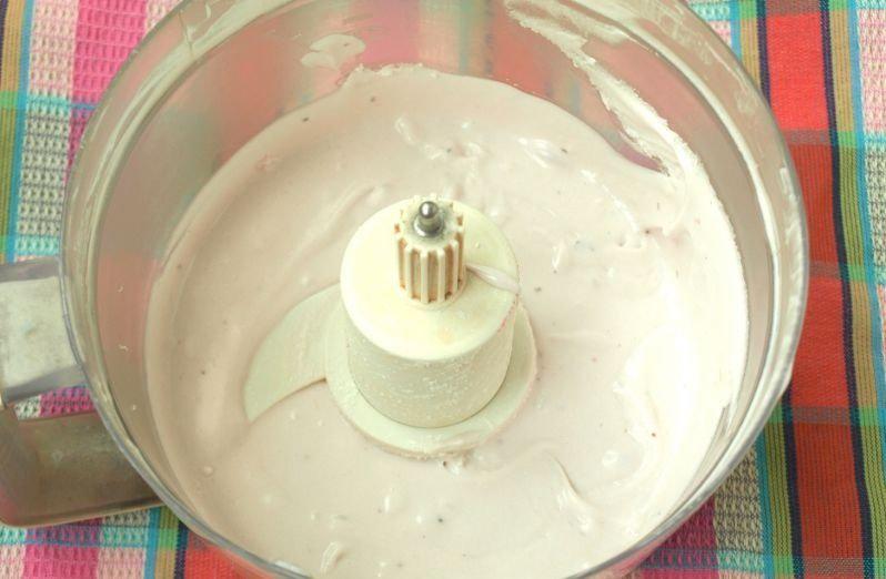 Конечно же ни один торт, даже если он самый простой, не может обойтись без крема. Поэтому крем мы приготовим первым делом. С помощью блендера нужно взбить холодные сливки с сахаром. Поставить крем в холодильник на время, пока мы будем нарезать фрукты и зефир.