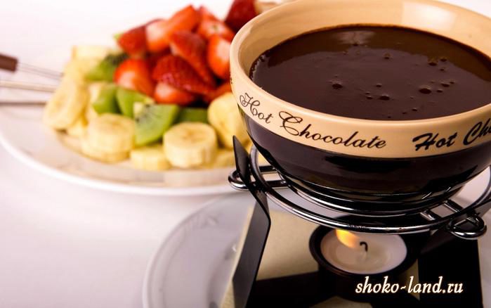 - Можно растопить шоколад в кастрюльке для фондю и поставить на подогрев.