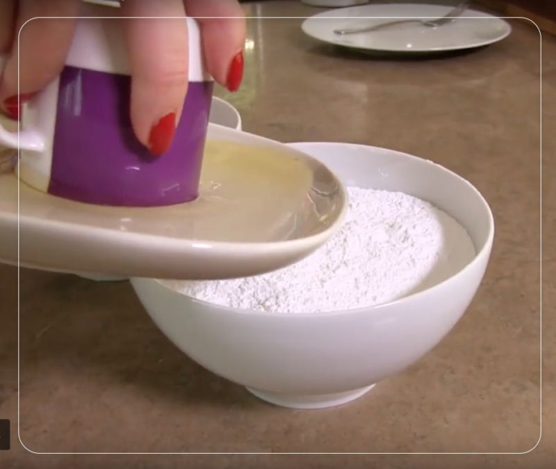 и выливаем белок в сахарную пудру.