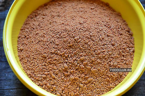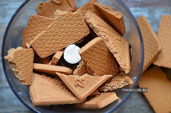 Печенье нужно перемолоть в мелкую крошку.