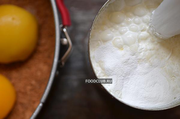 Второй слой крема будет с кислинкой и менее жирный. Для этого взбейте сметану с 4 столовыми ложками сахара.