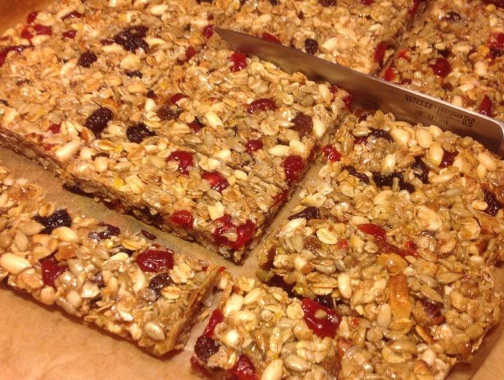3. Массу тщательно утрамбовываем в неглубокое блюдо. После этого ставим в холодильник, чтобы гранола основательно застыла. Затем разрезаем на небольшие батончики по 30-40 гр, (похожи на батончики мюсли).