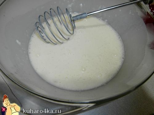 Через минуту ёмкость достаем и хорошенько промешиваем венчиком.