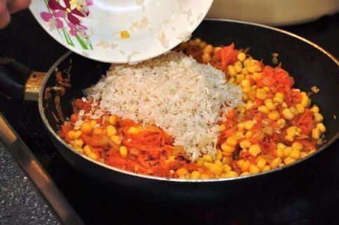 С кукурузы слить жидкость-положить её поверх лука.