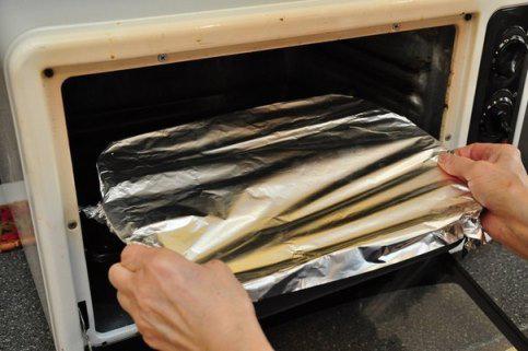 Накрыть жаровню фольгой и поставить в разогретую духовку.
