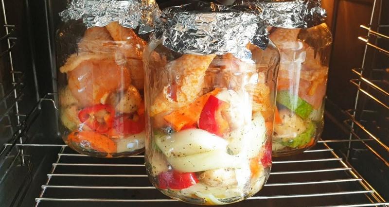 Как приготовить вкусный обед без хлопот? Пожалуй, такой вопрос задают себе многие хозяйки. Есть очень простое решение - просто закладываете курицу в банку, добавляете овощи со специями и отправляете в духовку на 2 часа. Вкусная курица в собственном соку с овощами и специями получается, словно из русской печки. Ну и что, что не в глиняном горшке она готовится? У многих они есть, в наше-то время? Зато такой способ приготовления — остроумный и очень удобный. Потому что курица в банке готовится практически сама, без участия хозяйки. Разумеется, хозяйка на начальном этапе должна помочь ей попасть в банку, но это все!