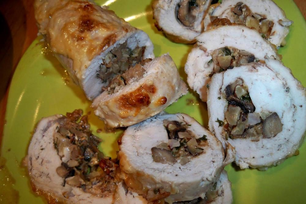 Куриные рулетики с грибами, сыром и ветчиной