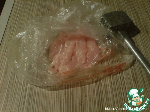 Складываем их в пакет рядышком друг к дружке, (к слову и полноценные кусочки я отбиваю в пакете) Слегка отбиваем, аккуратно вытаскиваем, волокна курицы скрепляются, переплетаются и жарятся, как и остальные собратья!